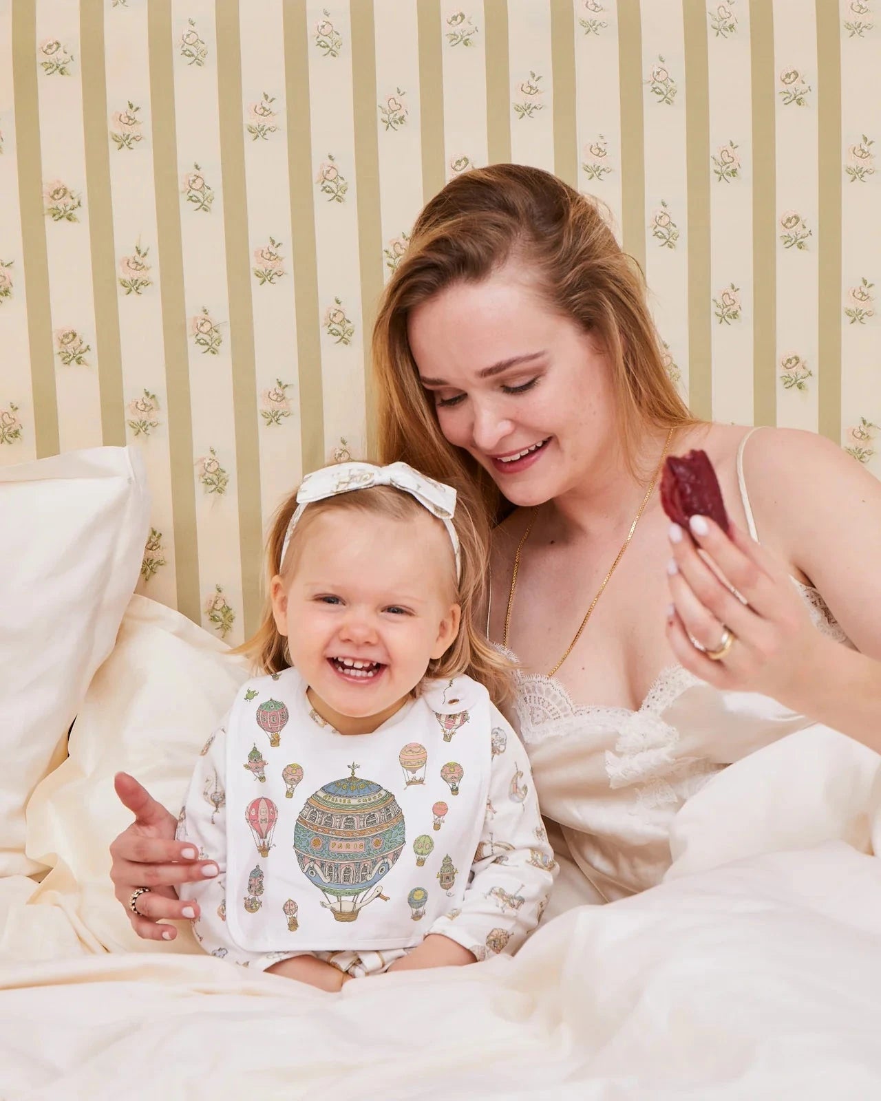 Atelier Choux Satin Bib – Hot Air Balloons is a stylish essential that brings refinement to mealtimes, teething moments, and days on the go. Ideal for protecting delicate outfits, catching little spills, or adding a chic touch to any look, it offers elegance and practicality all day long.