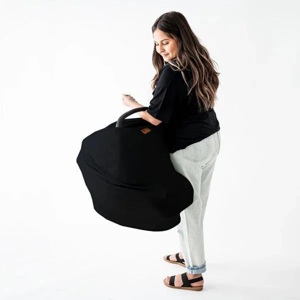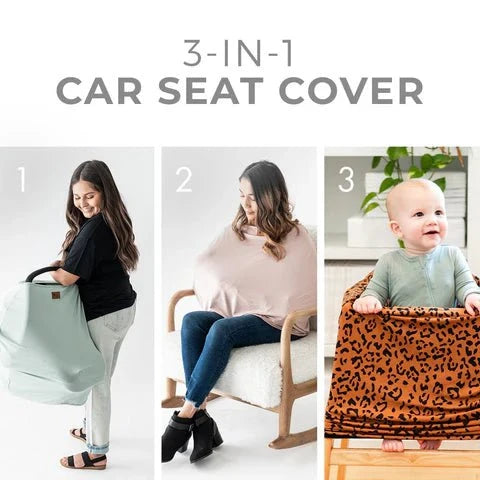 Crafted from super breathable bamboo rayon, our infant car seat cover protects your little one through the seasons, from bright sun rays and pesky mosquitoes, to light rain and cold winds. Light, stretchy, and baby soft, this car seat cover can also be used as a nursing cover, shopping cart cover, high chair cover, and so much more!