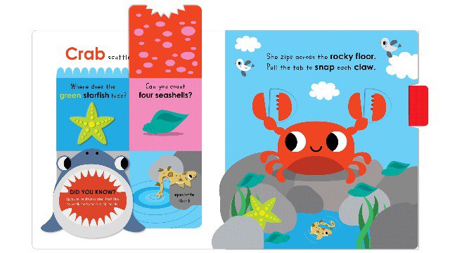 Meet adorable sharks and other underwater creatures in this busy book full of fun touches to keep your child engaged!